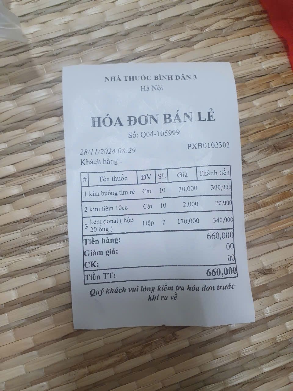 Ngày 28/11, letuantu đã tạm ứng gửi thêm đến Nhung 1,000,000đ để mua kim tiêm truyền.