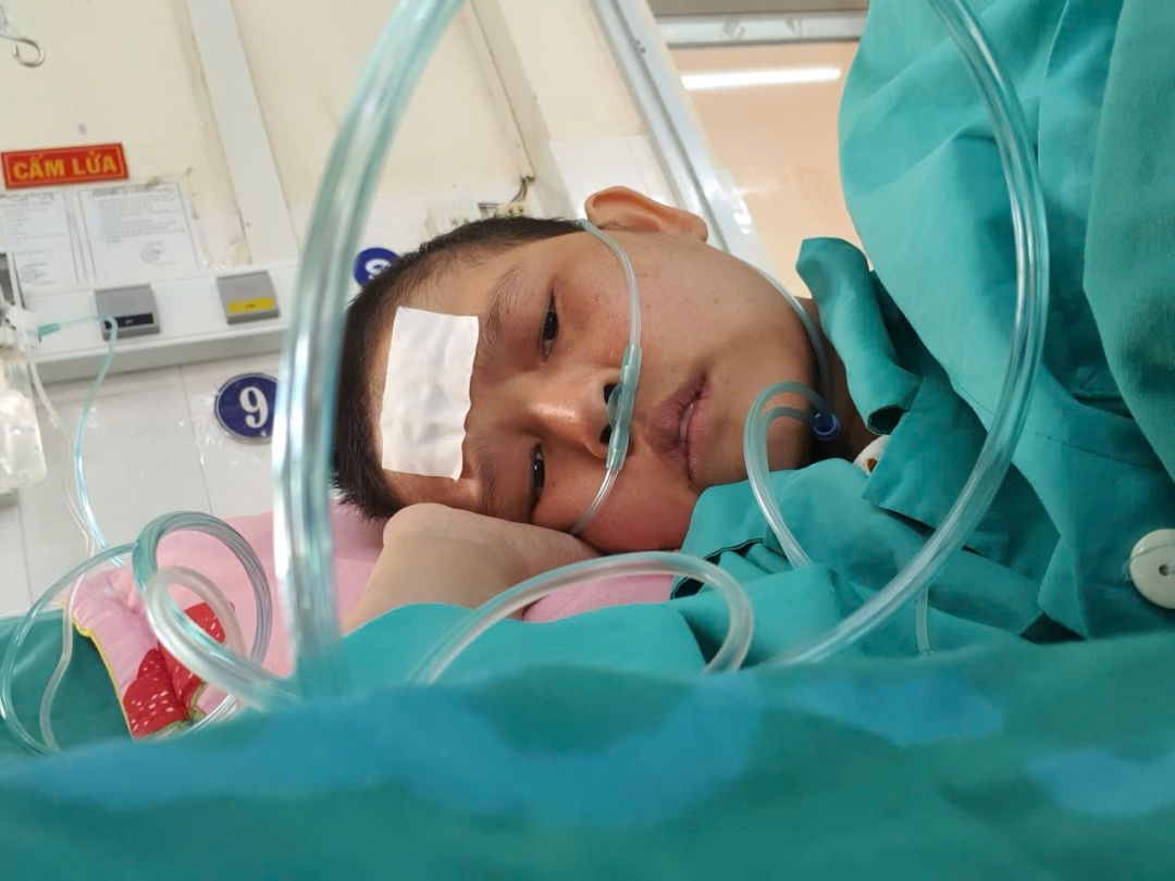 Cháu Nhung đau không chịu nổi phải nhập viện truyền thuốc...