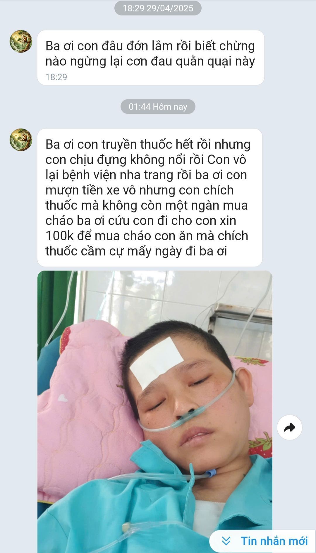 Không thể chia sẻ cơn đau thể xác nên đành chia sẻ bớt nỗi đau tinh thần khi thiếu thốn tài chính khi điều trị giảm nhẹ những ngày tháng cuối cùng của cuộc đời...