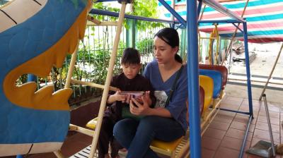 Thời gian này vẫn còn hạn chế tiếp xúc nên DucTai và các bạn chỉ đứng từ xa nhìn các em nhỏ.