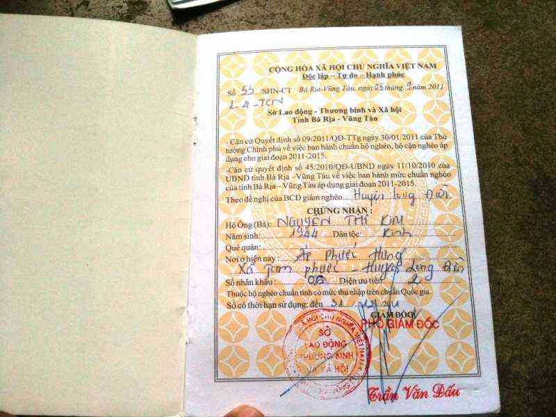 Trưa Thứ ba ngày 26/5/2015, Đoàn xác minh của diễn đàn nguoitoicuumang.com do chị Phụng dẫn đường đã đến thăm và xác minh trường hợp cụ nguyễn Thị Kim 73 tuổi, địa chỉ ở tổ 8 , Ấp Phước Hưng, xã Tam Phước, huyện long Điền, Tỉnh BR-VT. Đoàn chúng tôi gồm: chị Phụng, Tình Người, Anh Hải (Trưởng nhóm từ thiện Đồng Giác), Chị Thanh (Thành viên nhóm Đồng Giác), bạn chị Thanh và tôi. Tất cả 6 người.