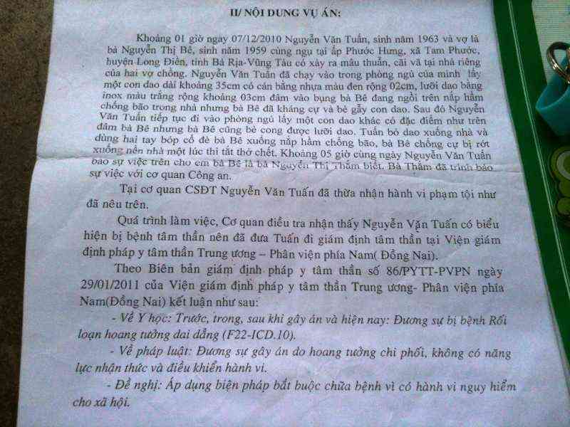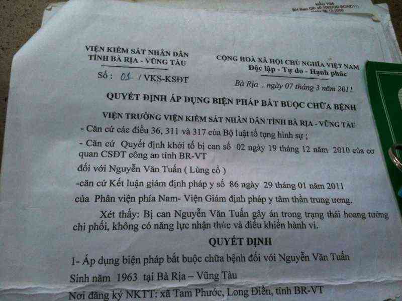 Nếu các bạn ở KV BRVT có thời gian đi XM trường hợp này dùm .