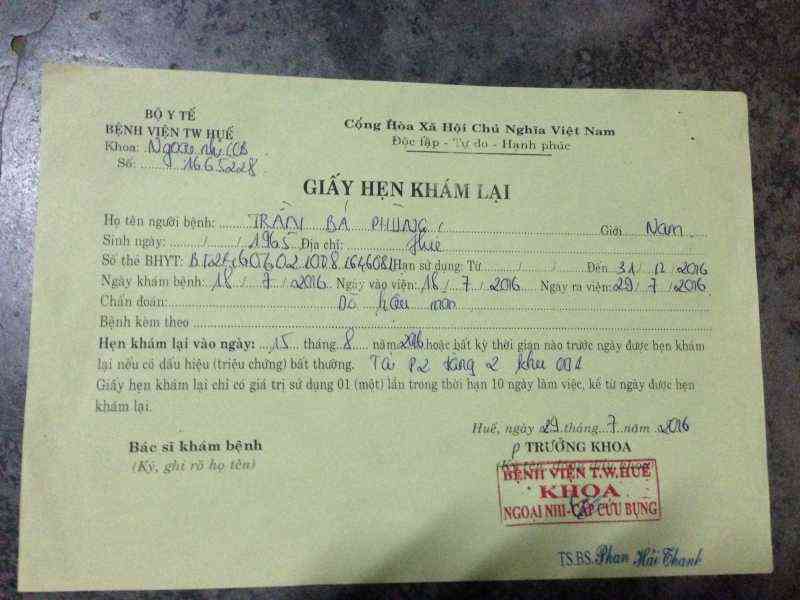 Ngày 18/7 chú Phùng trở lại bệnh viện theo dõi để mổ lần hai căn bệnh dò hậu môn lần trước còn xót lại. Nhưng không tìm thấy, nằm viên chờ lâu nên chú Phùng xin xuất viện. Được bác sĩ đồng ý và hẹn trở lại tái khám vào ngày 15/8