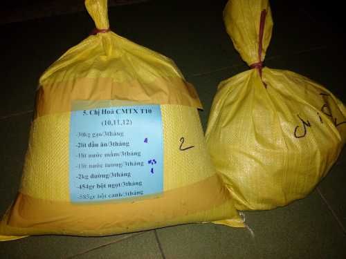 Chúng ta tiếp tục CMTX chị Hòa một số nhu yếu phẩm và sẽ chuyển 1 lần cho 3 tháng :