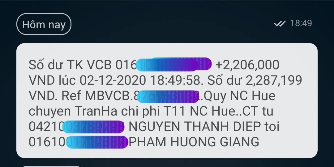 Em vừa nhận tiền hoạt động nồi cháo T11/2020.