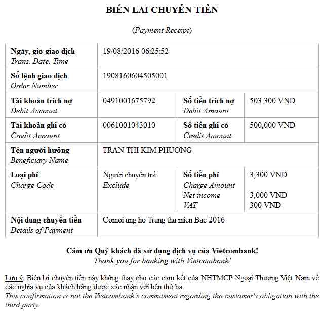 letuantu đã chuyển tiền vào tài khoản của chị Thocon rồi ạ!