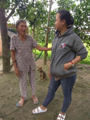 Hôm nhóm đến là hôm cô Lệ đi ăn đám giỗ xa, bà Đẩu ở nhà 1 mình đến tối. Lúc đến thăm bà đang nằm võng nói chuyện với 1 người hàng xóm, thấy cô Lệ đi, Dì vào ngồi chơi nói chuyện với bà. Đến thăm bà vui lắm vì tháng trước không xuống thăm.
