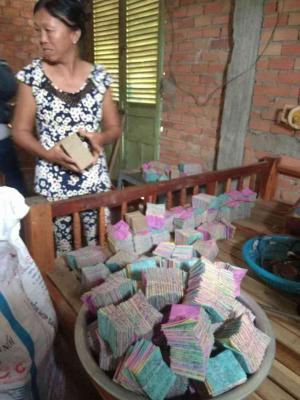 Tháng này Cô Lệ cũng bắt đầu nhận lại công việc xếp giấy hồi trước. với mỗi sấp giấy xếp cô nhận được 500đ. Cô xếp cả ngày thì hôm được 20,000 hôm được 25,000. Hôm nào mưa nhiều, nhà ướt thì cô xếp hơn.