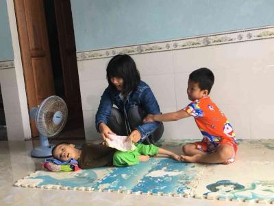 Hiện gia đình đã “bị” cho ra khỏi hộ nghèo nên các chế độ chính sách chỉ còn cho hai cháu, mẹ bé vẫn phải ở nhà chăm sóc, bố làm thợ nề khi có việc khi không vì vừa rồi dịch nên cũng ít việc.