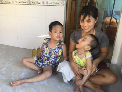 Cách đây 2 ngày, Sunny cùng bạn đã ghé thăm gia đình, trao quà của chương trình “hỗ trợ mùa dịch”, hai cháu Tấn và Hoàng vẫn bị bệnh, cháu đầu có đỡ hơn, có nhận thức, nghe và nói được ít, còn cháu sau bị nặng hơn.