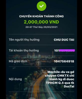 @Thocon : Em chuyển tới Duc Tai 2,000,000đ tiền CMKTX từ Michele_du và Gia đình dùm nhé.