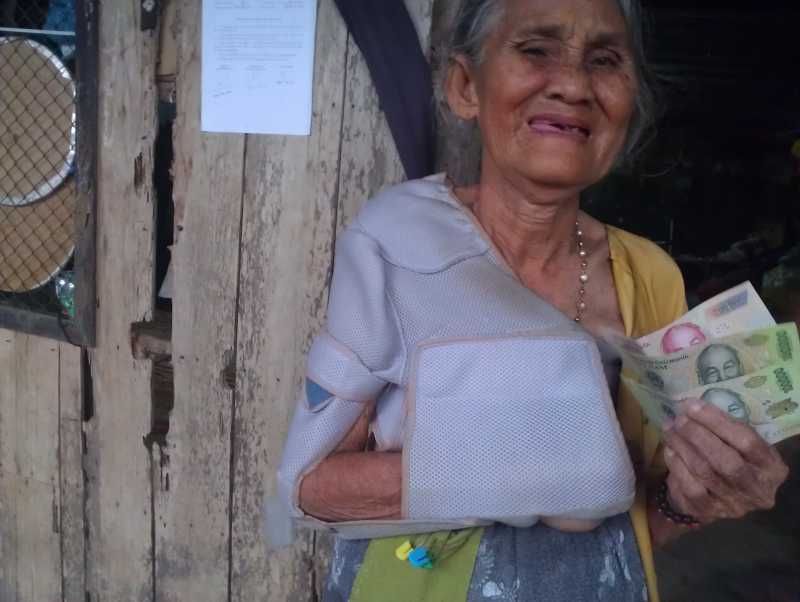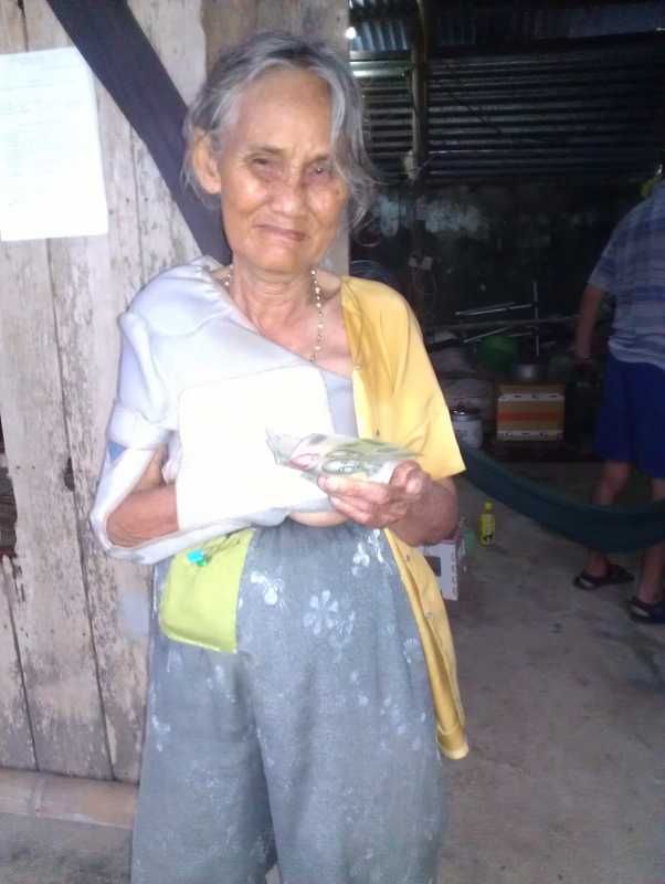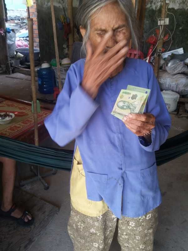 Hôm qua có ghé thăm và trao tiền 100k cùng với gạo, nhu yếu phẩm , mỳ tôm ( 300k ) cho bà Nở . Bây giờ con trai bà về ở với ng em ở Biên Hòa để có người chăm vì giờ con trai của bà Nở bị liệt nửa người .