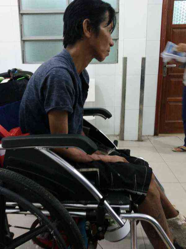 Hằng ngày, cô đẩy chú đi ăn cơm từ thiện hoặc ai cho gì ăn nấy sống qua ngày, tối thì ngủ ven ở bệnh viện An Bình. Đã mấy tháng rồi vết thương chưa được vệ sinh nên rất ngứa và khó chịu. Xương tay thì đã bị gãy lìa...