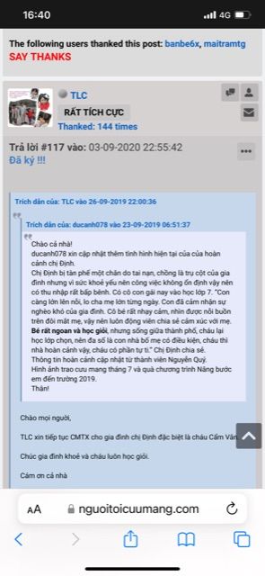 - [17/02/2017]:TV VKS đã xác minh hoàn cảnh này và đề xuất CMTX 700,000/tháng và các NYP[VânKiêuSa]