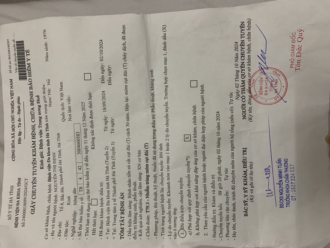 - [14/02/2017]:NGUYỄN THỊ ĐỊNH (SN 1976) - Địa chỉ:Tổ 13 phường bắc hà TP Hà Tĩnh Chồng: Nguyễn Văn Quang (1982): bị thần kinh từ nhỏ Con: Nguyễn Thị Cẩm Vân (2007) Chị Định là lao động chính nhưng bị tai nạn mất khả năng lao động, nhà nghèo khó[Kiều Oanh Nguyễn]
