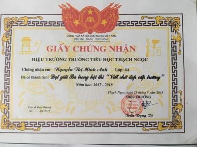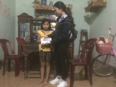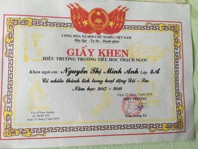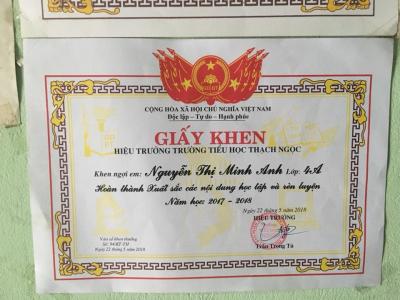 Thăm nhà hoàn cảnh 2 cháu Đức + Anh - Thạch Ngọc, thấy thành tích học tập của cháu Minh Anh rất vui mừng, phấn khởi cho cháu. Không có bố mẹ kề bên cạnh kèm từng câu chữ, nhưng cháu tự nổ lực xuất sắc toàn năm học, giải 3 viết chữ đẹp cấp trường, hoạt động đội - sao giỏi(mầm cán bộ đoàn giỏi)