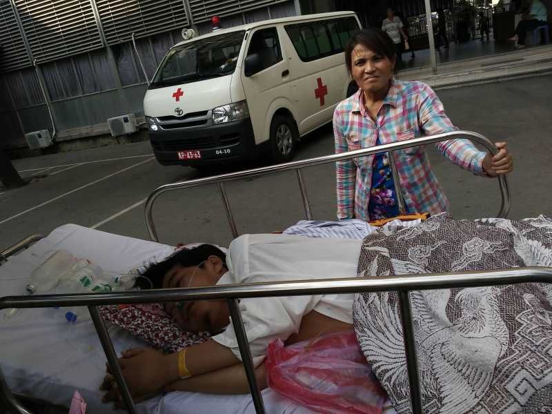 Mẹ anh thuê xe đưa anh lên BV Chợ Rẫy, chi phi tại BV ở Gò Công khoảng hơn 300,000đ (anh có BHYT) chưa tính các chi phí khác về ăn uống, tã, thuốc ngoài danh mục. Tiền xe chuyển viện là 1,200,000đ. Một bên đùi của anh bị lở loét lòi nguyên xương ra ngoài. Sau khi khám, bác sĩ yêu cầu phải mổ cắt bỏ toàn bộ phần chân phải mới có thể giữ được mạng sống. Hiện tại sức khỏe của anh yếu, anh không ăn uống gì được, không thèm ăn, lâu lâu mẹ anh cho uống hộp sữa nhưng anh cũng ói ra hết. Hiện anh đang được truyền dịch để đảm bảo sức khỏe thứ 6 này sẽ làm phẫu thuật, nếu không đủ sức khỏe thì thời gian dưỡng sức sẽ kéo dài thêm ra. Do tác dụng của thuốc, người anh bị sưng lên.