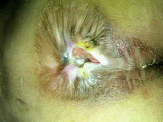 Vết mổ cũ tại BV quận Thủ Đức tại mông Trái hiện nay