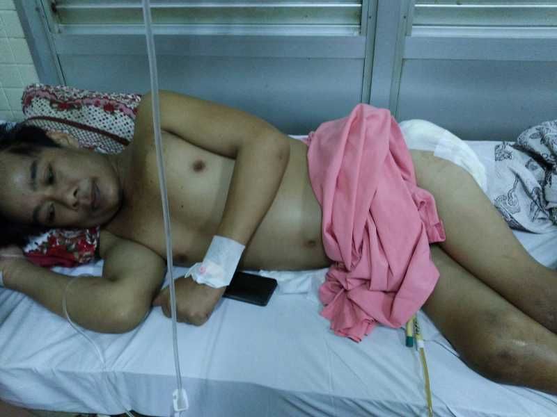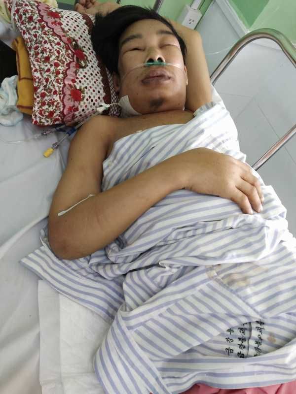 Mẹ anh thuê xe đưa anh lên BV Chợ Rẫy, chi phi tại BV ở Gò Công khoảng hơn 300,000đ (anh có BHYT) chưa tính các chi phí khác về ăn uống, tã, thuốc ngoài danh mục. Tiền xe chuyển viện là 1,200,000đ. Một bên đùi của anh bị lở loét lòi nguyên xương ra ngoài. Sau khi khám, bác sĩ yêu cầu phải mổ cắt bỏ toàn bộ phần chân phải mới có thể giữ được mạng sống. Hiện tại sức khỏe của anh yếu, anh không ăn uống gì được, không thèm ăn, lâu lâu mẹ anh cho uống hộp sữa nhưng anh cũng ói ra hết. Hiện anh đang được truyền dịch để đảm bảo sức khỏe thứ 6 này sẽ làm phẫu thuật, nếu không đủ sức khỏe thì thời gian dưỡng sức sẽ kéo dài thêm ra. Do tác dụng của thuốc, người anh bị sưng lên.