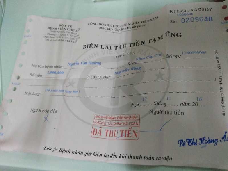 Tạm ứng đợt 1 bệnh viện Chỡ Rẫy ngày 17/11/2016