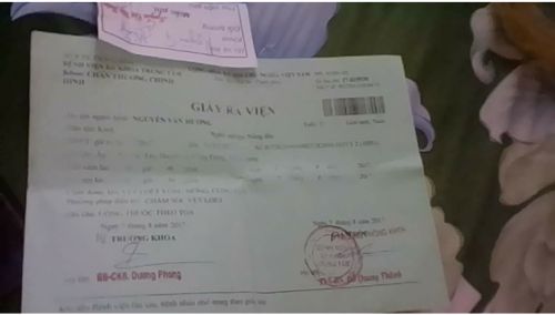 Vài thông tin Mai Trâm xin gửi đến Cả Nhà cùng được biết .kèm theo là giấy ra viện của Hưởng,