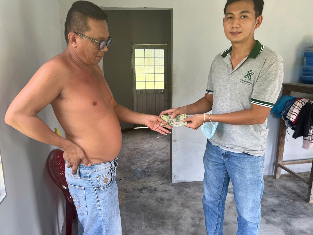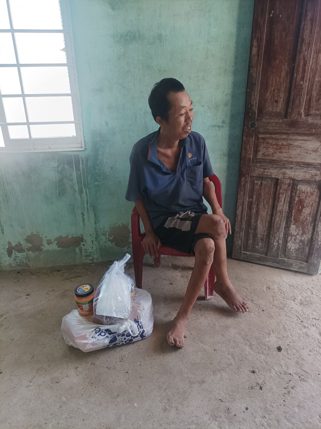 Em chú vẫn nấu ăn và đem qua cho chú ăn, lúc đến em chú cũng có chạy qua trò chuyện với mọi người, thì được biết từ lúc trước dịch chú được nhiều nơi nhiều nhóm đến hỗ trợ thì hay có người ghé chở chú đi lễ, từ lúc dịch đến hiện tại thì đã ít có ai đến hỗ trợ chú nên cũng ít có ng đến chở chú đi lễ.