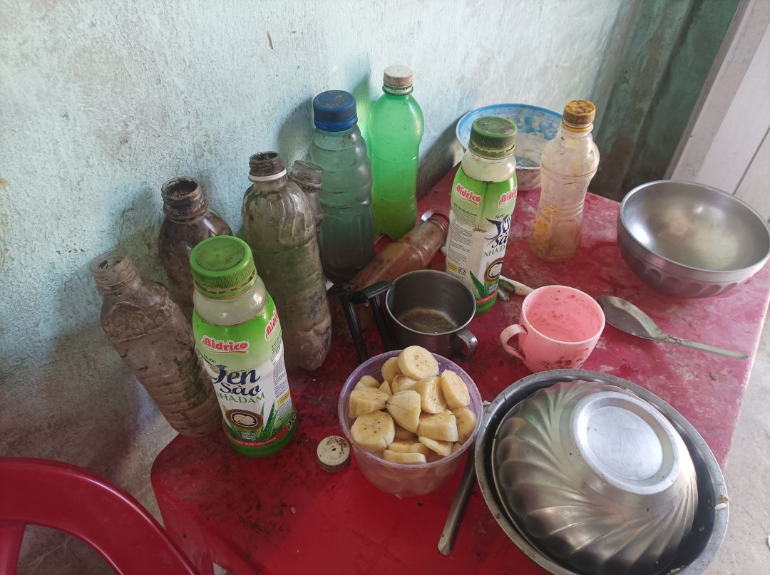 Em chú vẫn nấu ăn và đem qua cho chú ăn, lúc đến em chú cũng có chạy qua trò chuyện với mọi người, thì được biết từ lúc trước dịch chú được nhiều nơi nhiều nhóm đến hỗ trợ thì hay có người ghé chở chú đi lễ, từ lúc dịch đến hiện tại thì đã ít có ai đến hỗ trợ chú nên cũng ít có ng đến chở chú đi lễ.