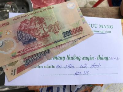 @Thocon : Em xuất quỹ chuyển tới Vânkiêusa khoản tiền mặt 600,000đ giúp gia đình em Hoa trong 3 tháng kể từ tháng 1/2021 dùm nhé.