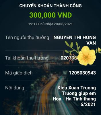 Trường xin được giúp chị Hoa khoản cmtx của tháng 6-2021.số tiền là 300.000đ