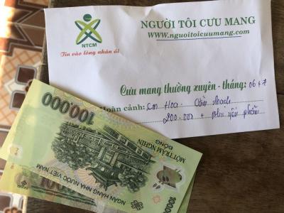 hiện tại chưa có MTQ nào chung tay giúp đỡ CMTX em Hoa nên tháng 05 FB chị Trần Nguyên đã gửi CMKTX 200.000 cùng nhu yếu phẩm đên em Hoa