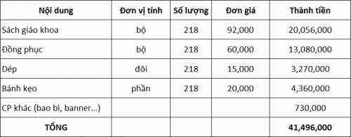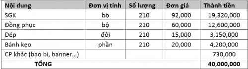 Dưới đây là kinh phí dự tính của chương trình: