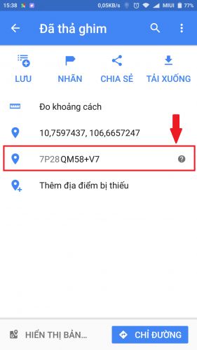 Bước 3: Nhấp vào tọa độ bên dưới ô thông tin vừa hiện lên.
