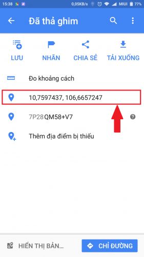 Bước 3: Nhấp vào tọa độ bên dưới ô thông tin vừa hiện lên.