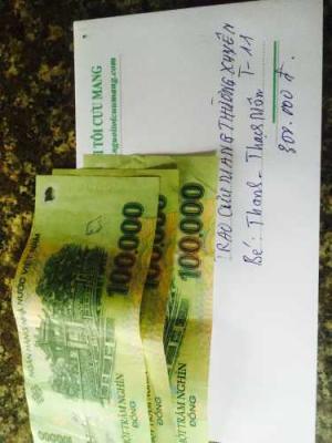 Trong khi chờ phản hồi của tuyliptim thì TG nhận 200k/tháng nhé. Còn 100k nữa thôi mong sự chung sức của Diễn đàn, góp gió thành bão để cho bé bớt khó khăn./.