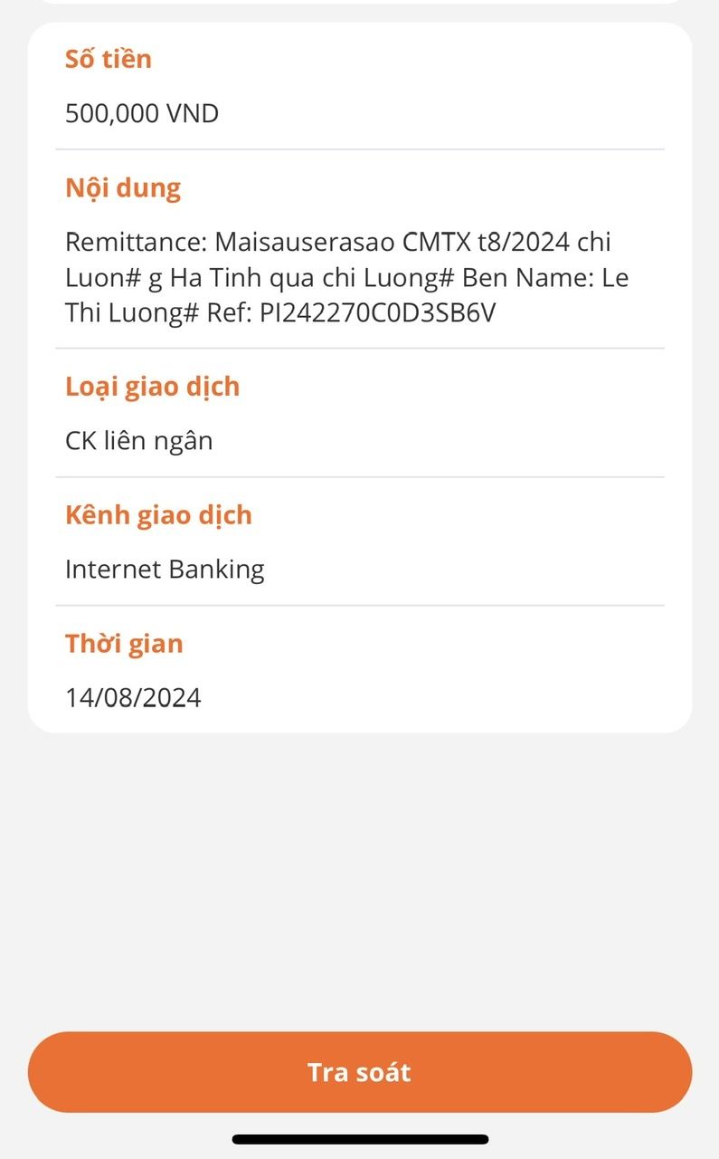 Vịt đã chuyển cmtx t10-11-12/2024 của Maisauserasao vào tài khoản chị Lương. Nhờ các bạn Hà Tĩnh cập nhật tình hình của gia đình chị ah.