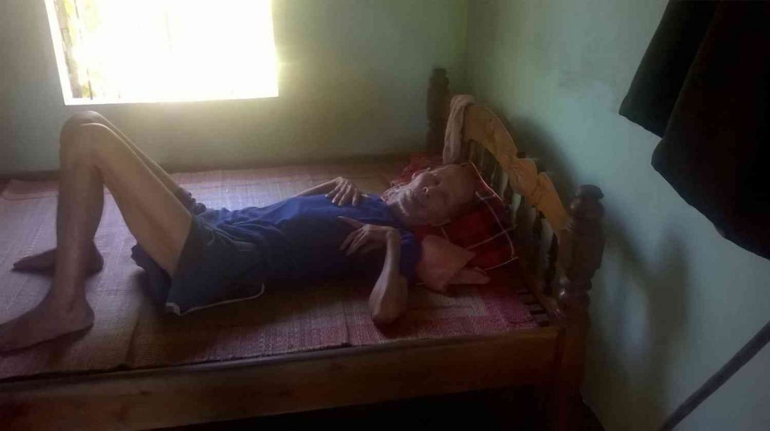 Đây là ba chị Xoa (sau tai biến ba năm ông có thể đi lại được nhưng rất yếu ớt)