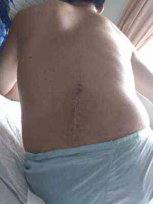 Đến đầu năm nay, bắt đầu có vết loét ở mông từ từ ăn sâu vào trong, tính đến nay thì anh đã phải phẫu thuật 5 lần.