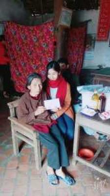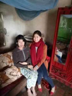 Khi tụi con đến chỉ có cụ bà dậy được còn cụ ông với 2 chị ốm nằm không dậy được .