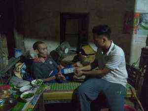 Anh lê văn Tại sinh năm 1974 đang bị chân teo ,chân anh bị teo từ lúc anh còn nhỏ ,lúc còn trẻ anh cũng có vào sài gòn bán vé số và ở quê thì cùng với các thành viên hội khuyết tật tỉnh Thanh Hóa đi ca hát và bán hàng , chân anh khi chuyển mùa thì nó lên cơn đau nhức , anh được nhà nước hỗ trợ 1 tháng 540k , tuy chân bị vậy nhưng anh rất lạc quan và vui vẻ ,chẳng buồn phiền chán nản gì về cơ thể bất tiện của mình ,khi nói chuyện với anh ,anh rất vui vẻ và lạc quan yêu đời chẳng buồn phiền gì, tuy nằm ở 1 chổ nhưng anh luôn quan tâm theo dõi đến những hoạt động bên ngoài xã hội,nhưng anh cũng có 1 nỗi lo mẹ anh năm nay đã 80 tuổi rồi tuổi đã già và sức đã yếu 1 tháng cụ được hỗ trợ 270k và 270 tiền nuôi anh . hằng ngày chỉ có 2 mẹ con quay quần với nhau và mọi hoạt động của anh luôn cần có mẹ lo vì anh đi không được ,anh cũng có 1 chiếc xe lắc nhưng cũng đã lâu rồi chưa dùng được vì nó đã mục hết rồi ,và anh cũng rất mong muốn có được 1 chiếc xe mới để tự lo cho chính bản thân mình khi mẹ già có chuyện gì thì anh vẫn còn có thể tự lo cho mình được.