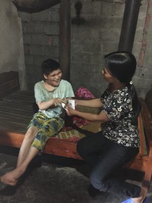 Sáng hôm nay 31/8 Hoaiti có ghé thăm và trao số tiền 400.000d  CMTX tháng 8 đến với mẹ con chị Lương rồi ah. Mẹ con chị rất mừng và cảm ơn cả nhà nhiều ah.