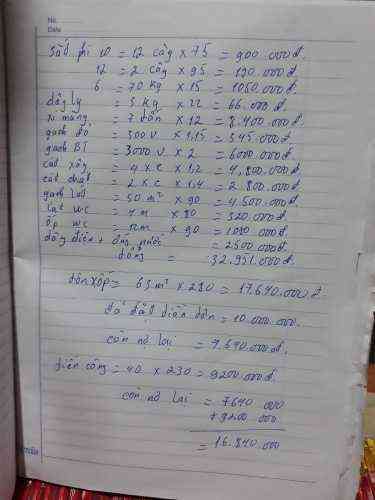 Em gửi các anh chị chi phí nhà em ạ