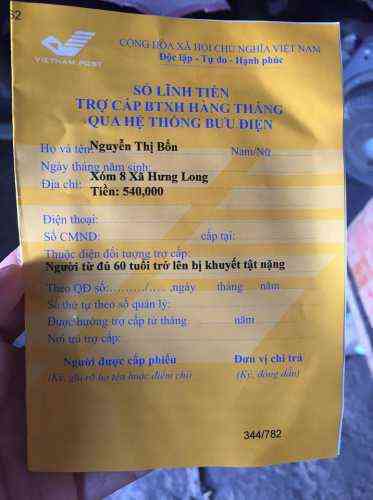 Bà là vợ lẽ,  bà không có con cái nên bà sống một  mình trong căn nhà lụp xụp , sống nhờ vào khoản chu cấp thường xuyên là trợ cấp người khuyết tật nặng 540.000 đồng, mắt bà bị mù nên rất đáng thương lủi thủi trong căn nhà nhỏ. Người con trai của vợ cả cũng không quan tâm, hắt hủi bà. Dưới đây là hình ảnh hoàn cảnh của bà, Bảo hiểm y tế năm 2018 bà chưa nhận được: