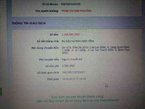 @Trangvitgioi : Em chuyển tới Loannguyen1202 số tiền 21,500,000đ để các bạn khu vực TP. HCM chuẩn bị hàng hóa cho chương trình nhé.
