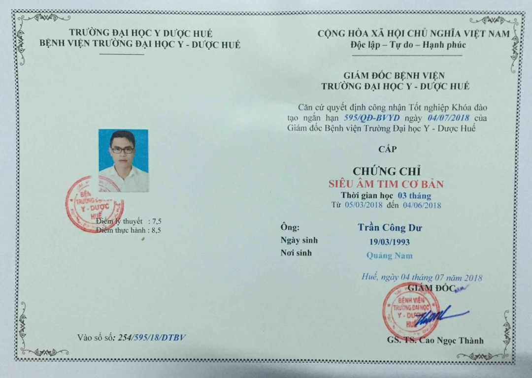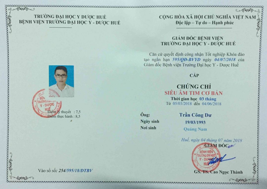 Dạ, Cháu xin gởi đến cả nhà biên lai học phí và chứng chỉ Siêu âm tim Cháu đã học ạ.