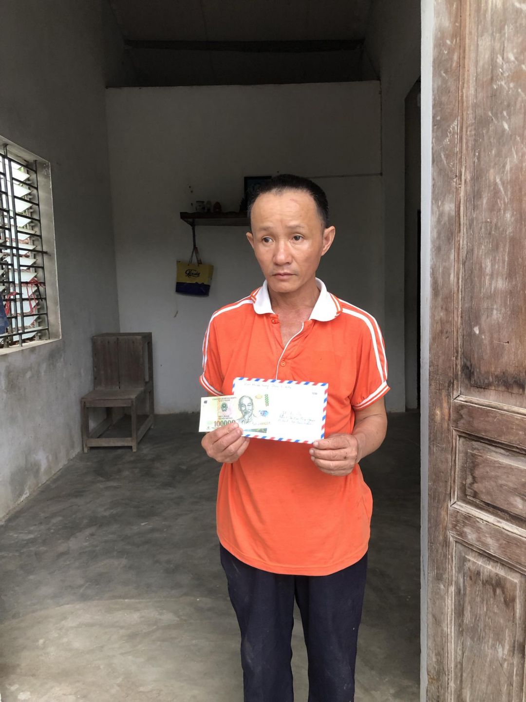 Hoàn cảnh: chú An bị mù, không có khả năng lao động, vợ mất sớm, con gái phải gửi vào làng SOS, ít có cơ hội thăm con, sống nhờ trợ cấp 540,000đ/tháng