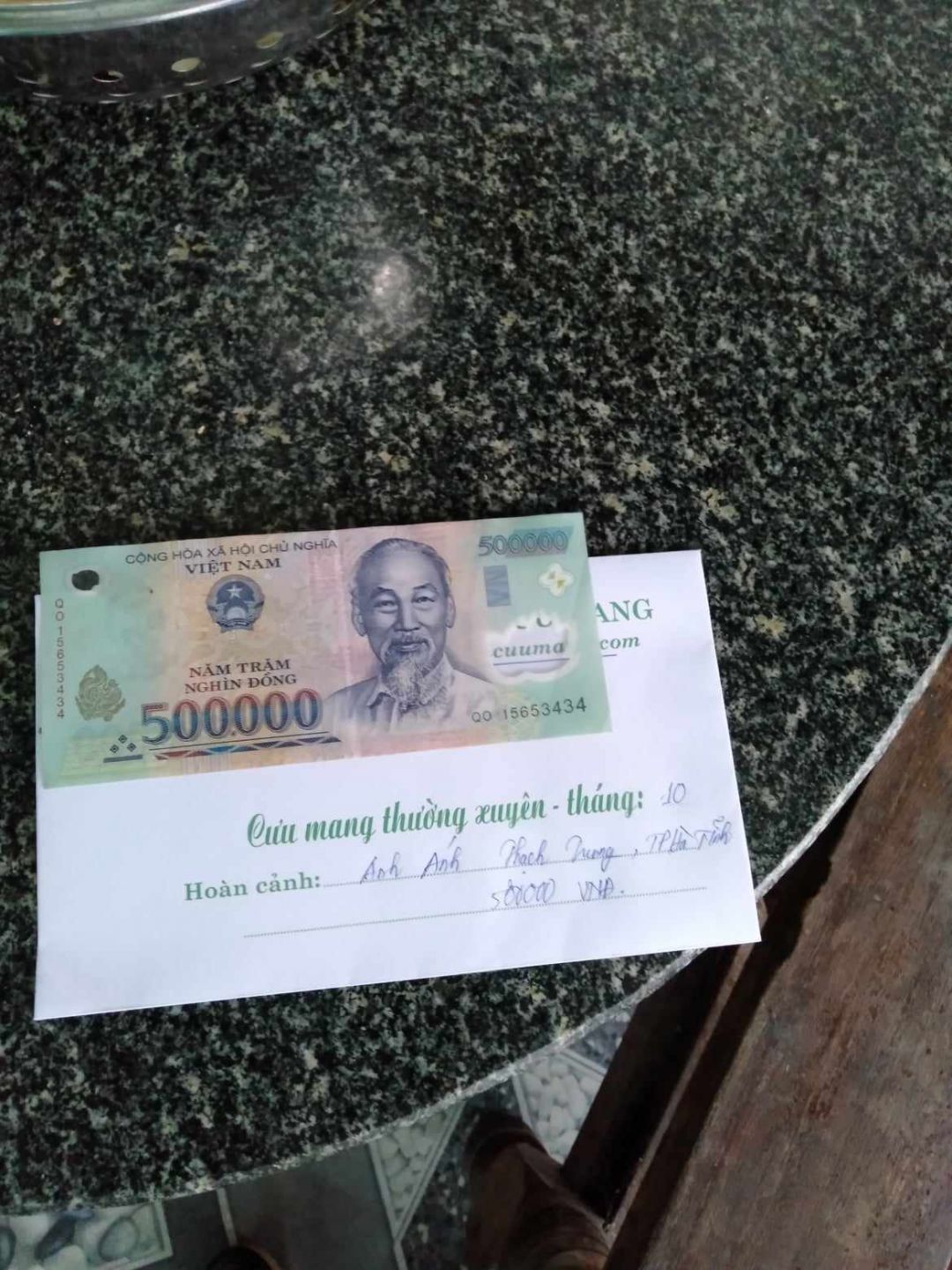 Thứ ba ngày 06 tháng 11. Thành viên Nguyễn Quý đã tới trao CMTX tháng 10 cho hoàn cảnh Anh Ánh - Thạch Trung.