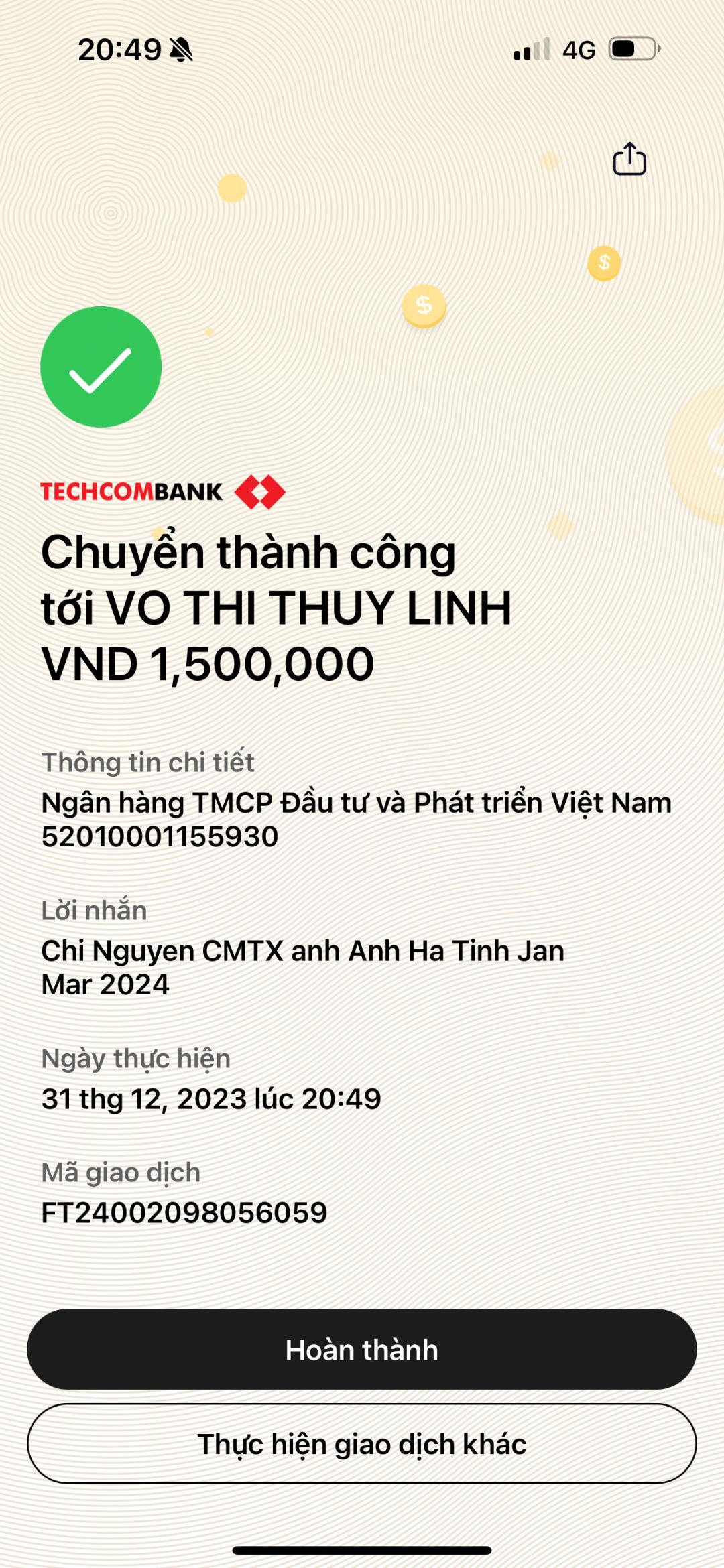 Chị Chi Nguyen tiếp tục CMTX gia đình anh Ánh từ tháng 4 -6/2024 nhé. Nhờ em và nhóm thăm hỏi và trao gửi yêu thương.