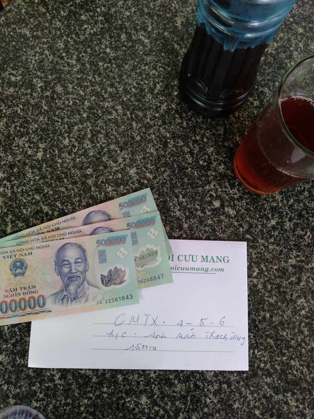 Thứ ba ngày 17 tháng 9. Thành viên Nguyễn Quý đã tới trao CMTX tháng 9 cho hoàn cảnh Anh Ánh - Thạch Trung.
