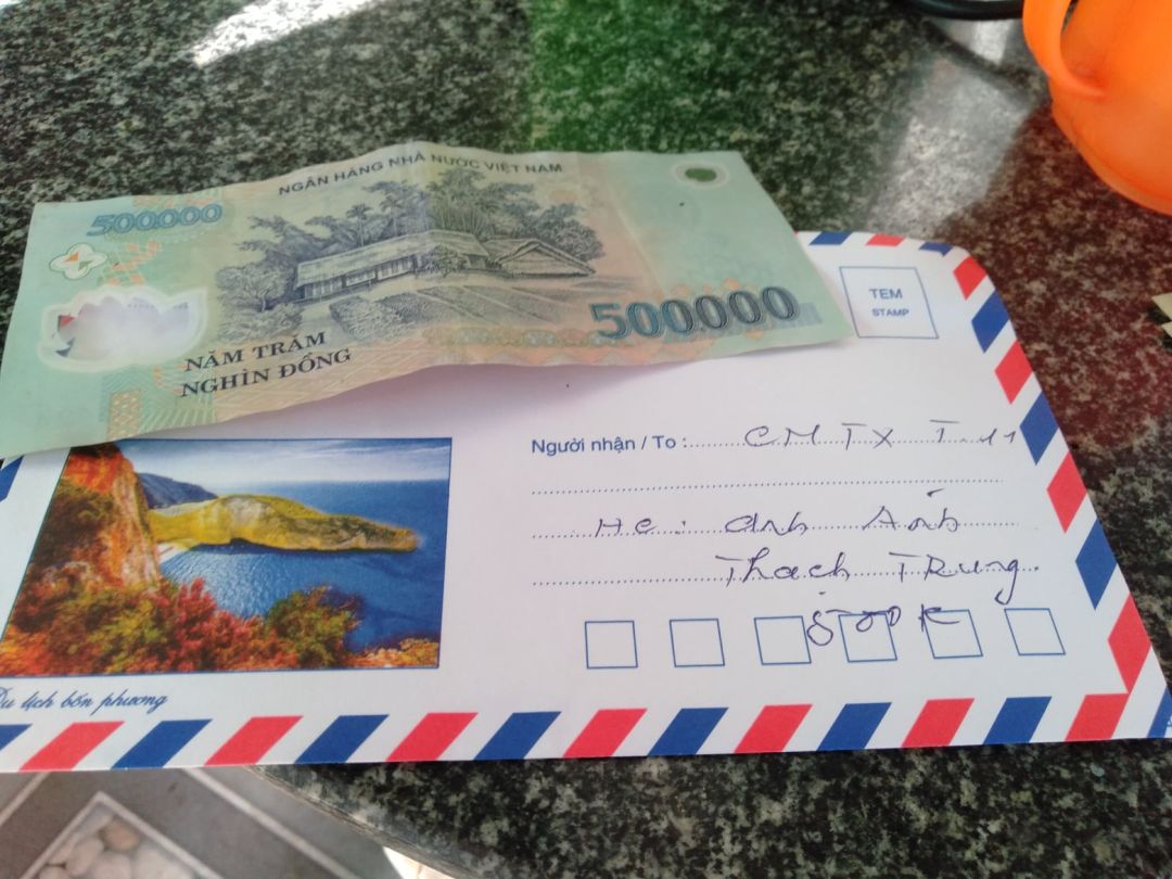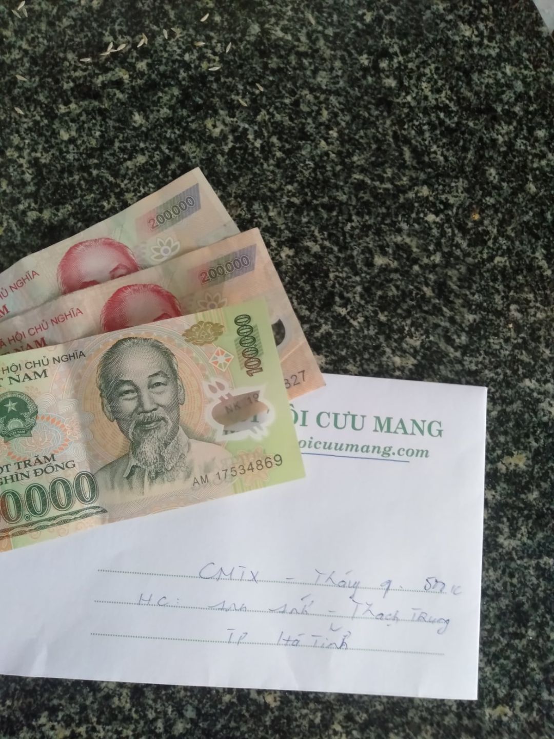 Hôm nay ngày 28 tháng 4. Thành viên Nguyễn Quý đã tới trao CMTX tháng 4-5-6 cho A Ánh ở xã thạch Trung- Thành Phố Hà Tĩnh.