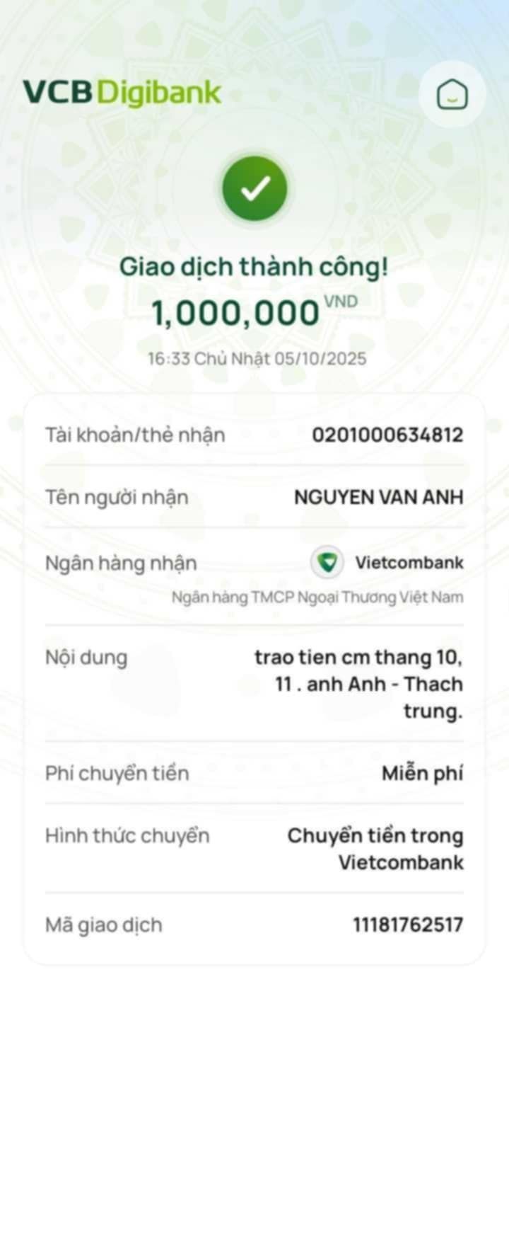 Bạn Chi Nguyen vẫn tiếp tục giúp anh Ánh quý 4/2025. Đã chuyển khoản ạ!